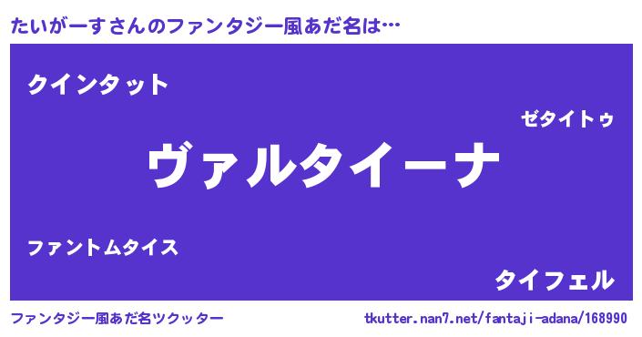 | 男性向けラノベタイトル風あだ名 | 『魔弾の王とたいがーす』 |