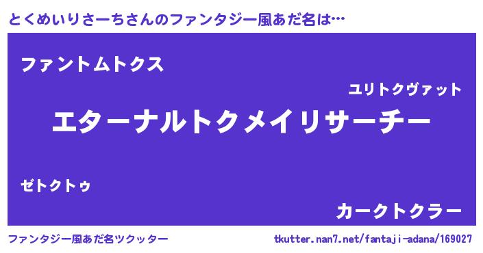 | 意味不明あだ名 | 『とくめいりさーちフォーエバー』 |