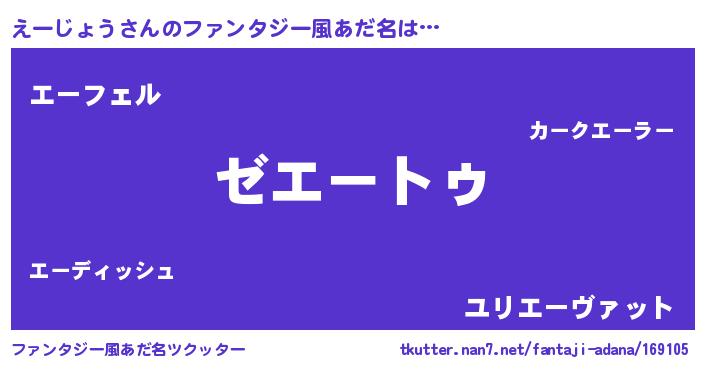 | 男性向けラノベタイトル風あだ名 | 『Re:えーじょうから始める異世界生活』 |