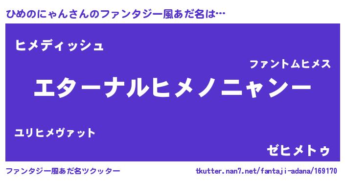 | 欧米人風あだ名 | 『ひめのにゃんクリステル』 |