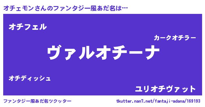| 意味不明あだ名 | 『住所不定無職オチェモン(50歳)』 |