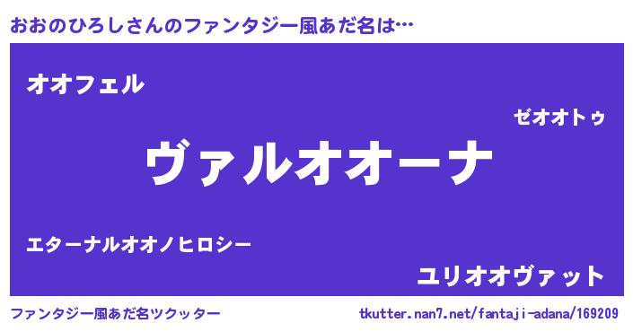 | 男性向けラノベタイトル風あだ名 | 『魔弾の王とおおのひろし』 |