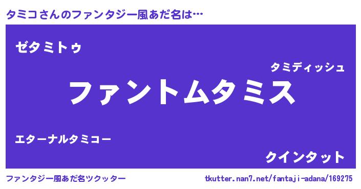 | ヒーロー風カッコイイあだ名 | 『幻影騎士タミ』『最強戦士タミコ』 |