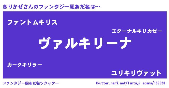 | 男性向けラノベタイトル風あだ名 | 『この素晴らしい世界にきりかぜを!』 |
