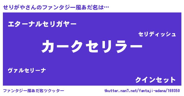 | 意味不明あだ名 | 『せりがやフォーエバー』『自称せりがや』 |