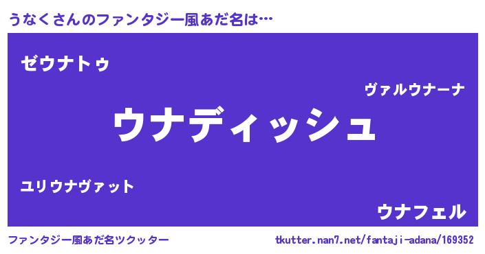 | ポケモン風あだ名 | 『ゼニウナ』『ウナゴンZ』『ウーナイ』 |