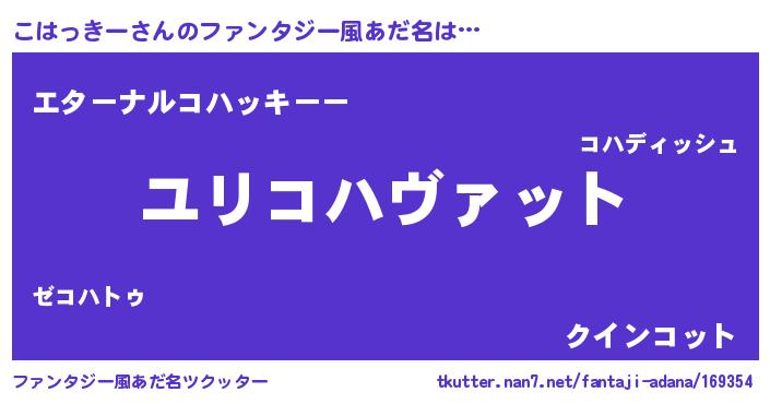 | 男性向けラノベタイトル風あだ名 | 『転生したらこはっきーだった件』 |