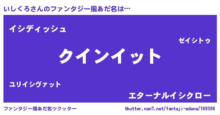 | 男性向けラノベタイトル風あだ名 | 『おまえをオタクにしてやるから、俺をいしくろにしてくれ! 』 |