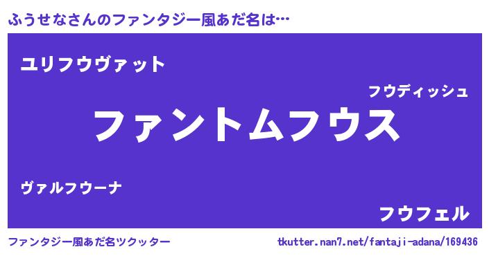| 意味不明あだ名 | 『とにかく怪しいふうせな』 |