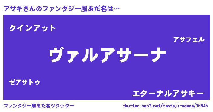 | 意味不明あだ名 | 『住所不定無職アサキ(2歳)』『自称アサキ』 |