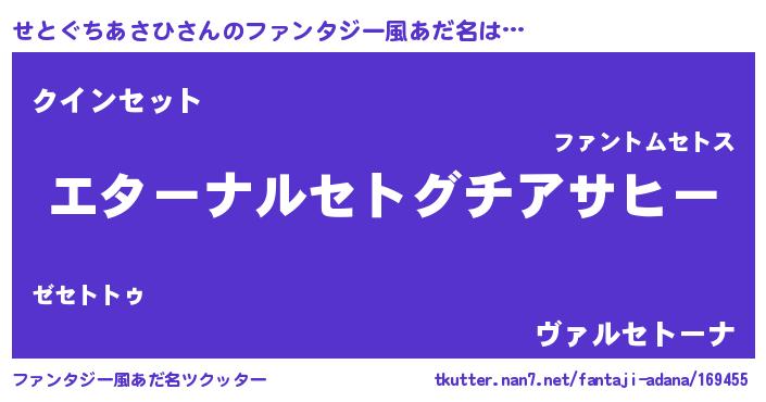 | 意味不明あだ名 | 『せとぐちあさひフォーエバー』 |