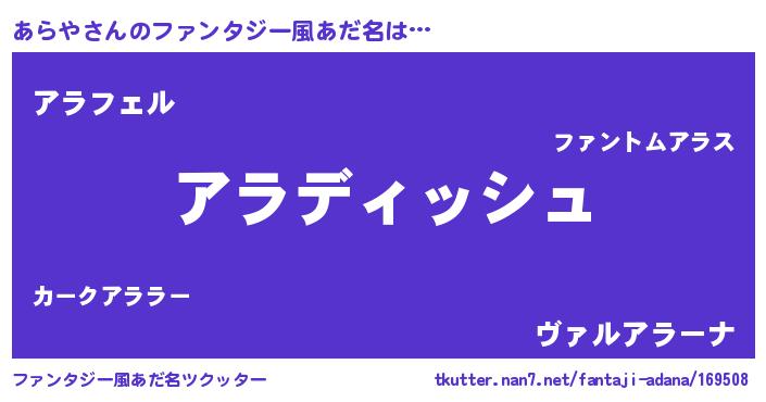 | 伝説のあだ名 | 『古文書に記された暗殺者あらや』 |