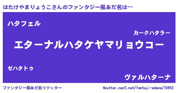| 意味不明あだ名 | 『はたけやまりょうこフォーエバー』 |