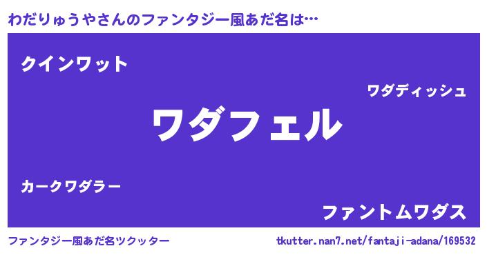 | 男性向けラノベタイトル風あだ名 | 『わだりゅうやの憂鬱』 |