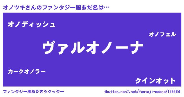 | 男性向けラノベタイトル風あだ名 | 『魔弾の王とオノツキ』 |