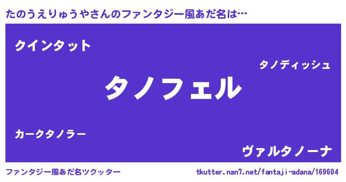 | 男性向けラノベタイトル風あだ名 | 『たのうえりゅうやの憂鬱』 |