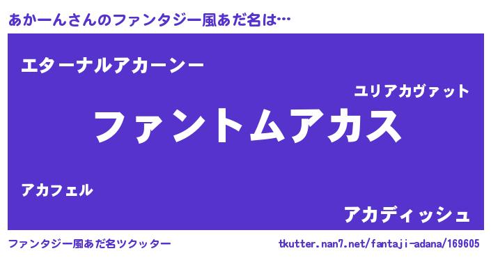 | 男性向けラノベタイトル風あだ名 | 『あかーんの嫁は女の子じゃないと思った?』 |