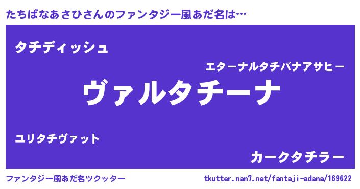 | 男性向けラノベタイトル風あだ名 | 『魔弾の王とたちばなあさひ』 |