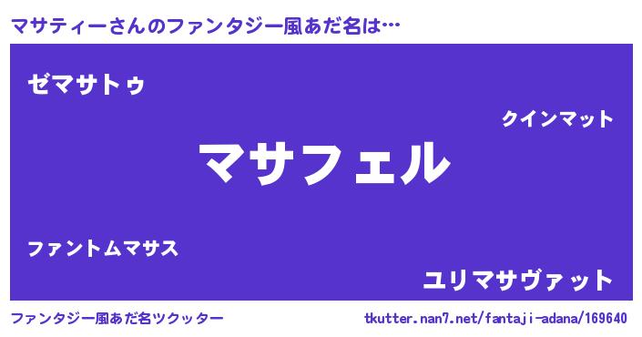 | 男性向けラノベタイトル風あだ名 | 『マサティーの憂鬱』 |