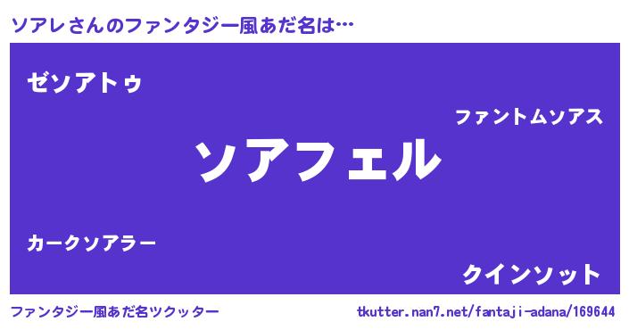 | 男性向けラノベタイトル風あだ名 | 『ソアレアートオンライン』 |