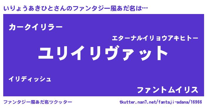 | ヒーロー風カッコイイあだ名 | 『暗黒騎士イリ』『ネオイリョウアキヒト』 |