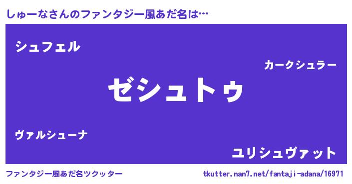 | 男性向けラノベタイトル風あだ名 | 『Re:しゅーなから始める異世界生活』 |