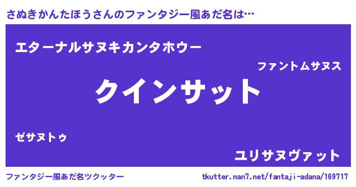 | 男性向けラノベタイトル風あだ名 | 『さぬきかんたほうに滅ぼされるだけの簡単なお仕事です』 |