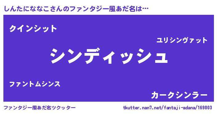 | ヘコむあだ名 | 『しんたにななこ(遠い目)』『しんぷりん』 |