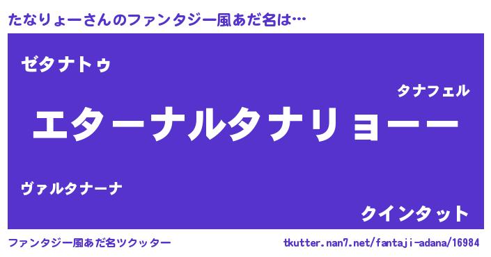 | 意味不明あだ名 | 『たなりょーフォーエバー』 |