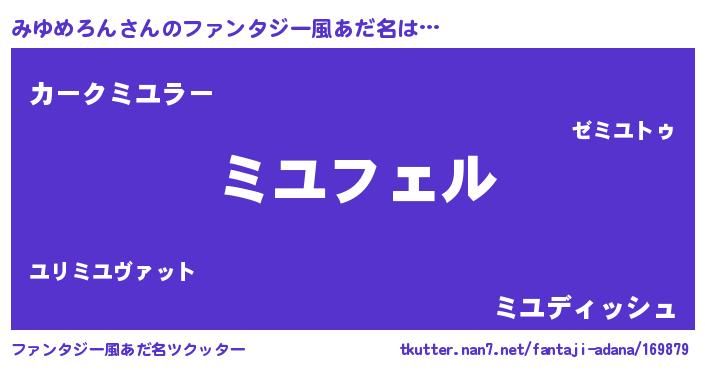 | 女子向けラノベタイトル風あだ名 | 『(仮)みゆめろんのやんごとなき事情』 |