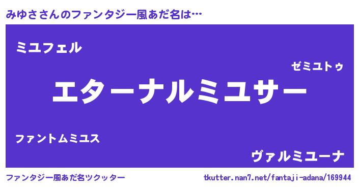| ポケモン風あだ名 | 『ミユサダネ』『ミユゴンZ』 |