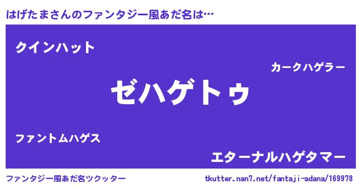 | 女子向けラノベタイトル風あだ名 | 『はげたまなんてお断りですっ。』 |
