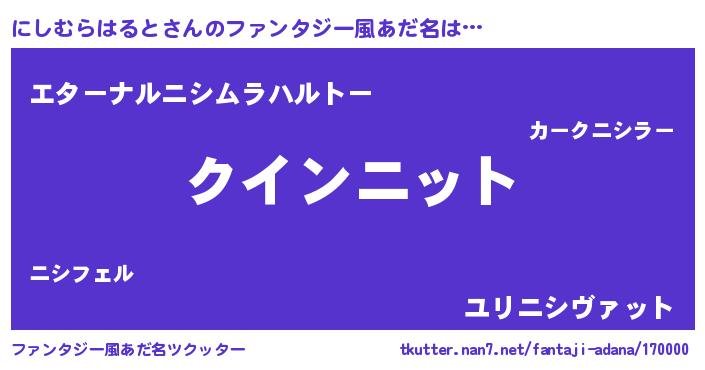 | ポケモン風あだ名 | 『ニックウザ』『ニシムダネ』 |