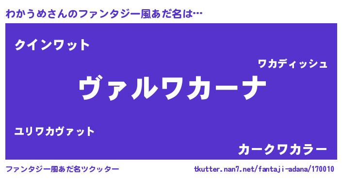 | 男性向けラノベタイトル風あだ名 | 『魔弾の王とわかうめ』 |