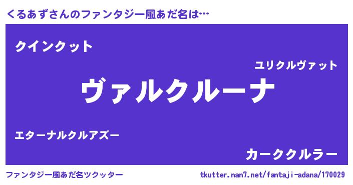 | 女子向けラノベタイトル風あだ名 | 『乙女ゲームの破滅フラグしかない悪役くるあずに転生してしまった…』 |
