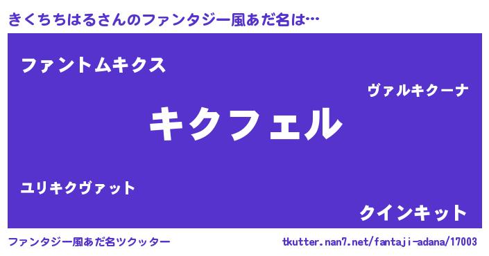 | 男性向けラノベタイトル風あだ名 | 『キクチチハルアートオンライン』 |