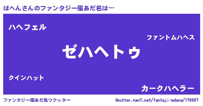 | 男性向けラノベタイトル風あだ名 | 『Re:はへんから始める異世界生活』 |