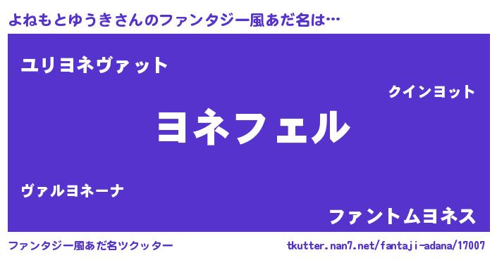 | 胡散臭い通販商品みたいなあだ名 | 『億万長者になれるブレスレット…その名も「よねもとゆうき」』 |
