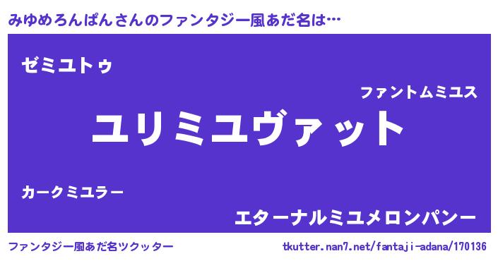 | 男性向けラノベタイトル風あだ名 | 『ミユメロンパンスレイヤー』 |