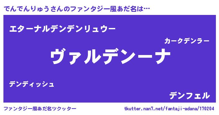 | 意味不明あだ名 | 『住所不定無職でんでんりゅう(5歳)』 |