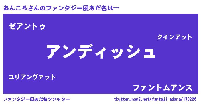 | 欧米人風あだ名 | 『アンジェラ・あんころ』 |
