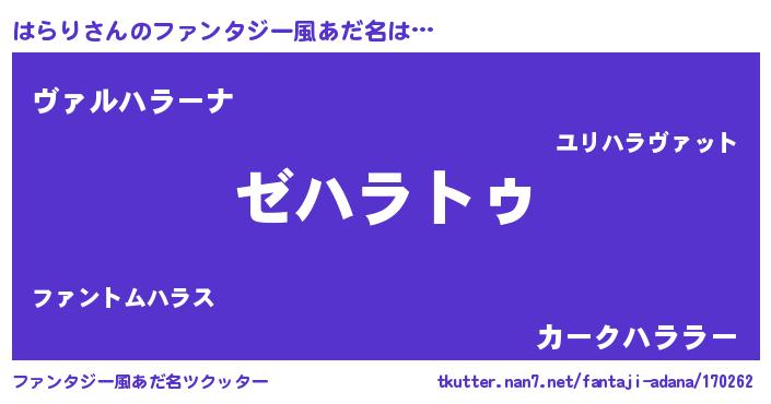 | 女子向けラノベタイトル風あだ名 | 『はらりストレイドッグス』 |