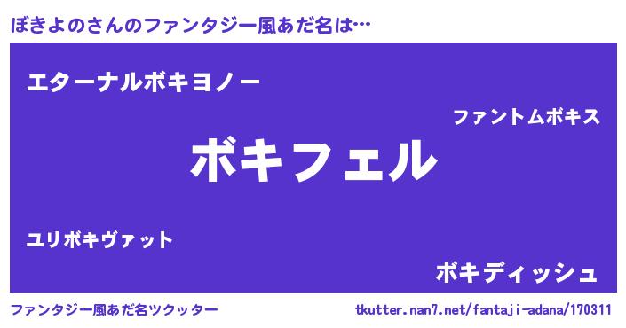 | 欧米人風あだ名 | 『マイケルぼきよの』『ウサインぼきよの』 |
