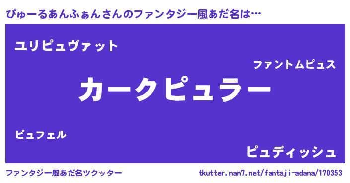 | 意味不明あだ名 | 『なめこ科ぴゅーるあんふぁん属』 |