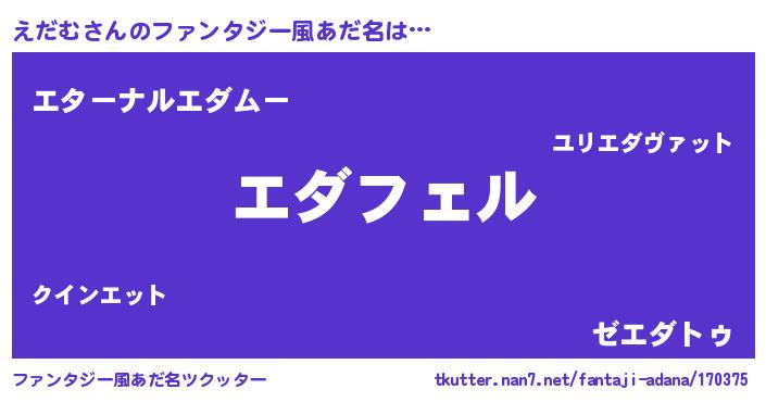 | 意味不明あだ名 | 『ペロリンえだむ』『えだむフォーエバー』 |