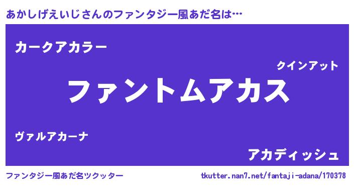 | 女子向けラノベタイトル風あだ名 | 『あかしげえいじの卵を拾いまして』 |