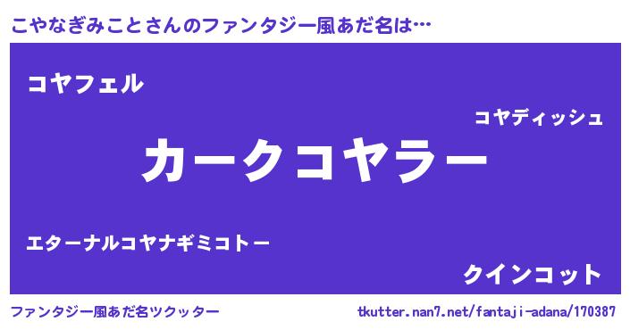 | ヘコむあだ名 | 『こやふぇ~』『こやなぎみこと(遠い目)』 |