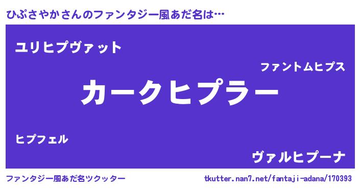 | ヘコむあだ名 | 『ひぷを』『ひぷっふぃ~』『つくし』 |