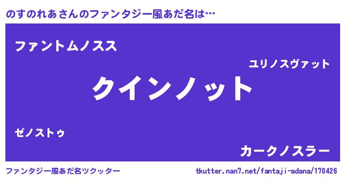 | ヒーロー風カッコイイあだ名 | 『正義の使者のすのれあ』『炎刃騎士ノス』 |