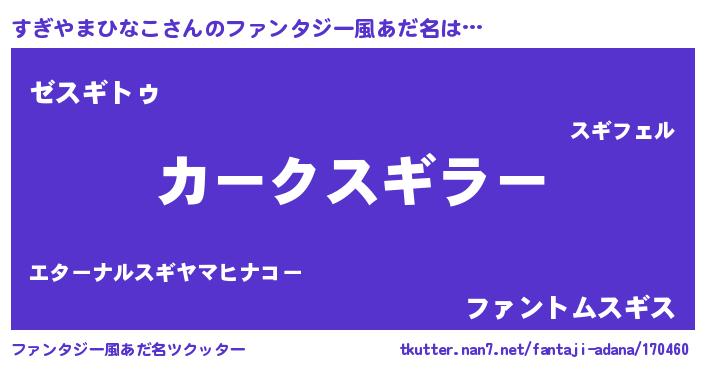 | 男性向けラノベタイトル風あだ名 | 『うちのすぎやまひなこが世界を掌握している!』 |